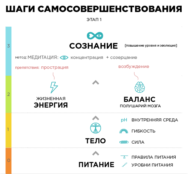 Представената таблица с практиките на школата в контекста на влиянието на всеки аспект. Независимо от Вашия сегашен тип хранене Вие може да се занимавате с всяка практика.